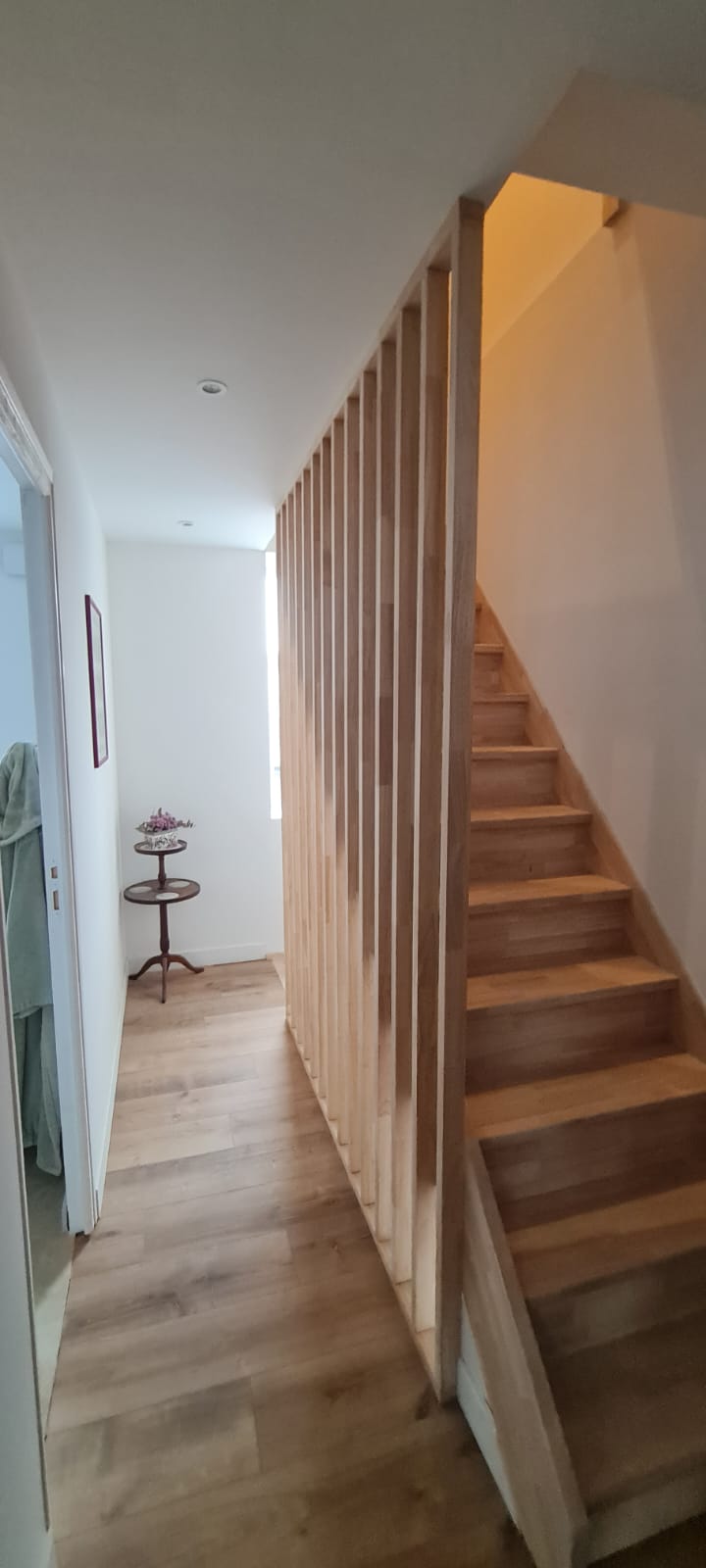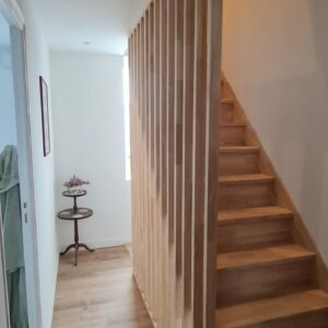 Porte bois – Escalier crémaillère et claustra