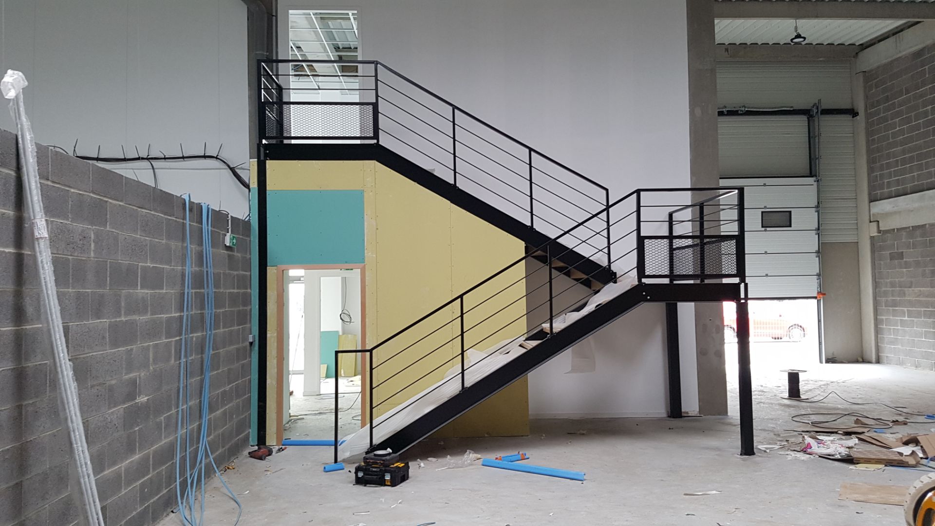 Marches tôles larmées antidérapantes – main courante acier laquée